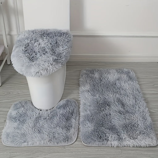 Deze 3-delige ultrafijne vezel badkamer tapijt set is perfect voor het toevoegen van comfort en stijl aan je badkamer. De set bestaat uit een toile...