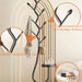 Deze moderne kapstok met takvormige haken combineert stijl en functionaliteit moeiteloos. De haken zijn schuin geplaatst onder een hoek van 45 graden, waardoor kleding en accessoires stevig blijven hangen zonder af te glijden. Met zijn slanke metalen constructie bespaart het meubel ruimte en past het perfect in elke gang, slaapkamer of kantoor. Voeg een vleugje elegantie toe aan je interieur met dit praktische pronkstuk.