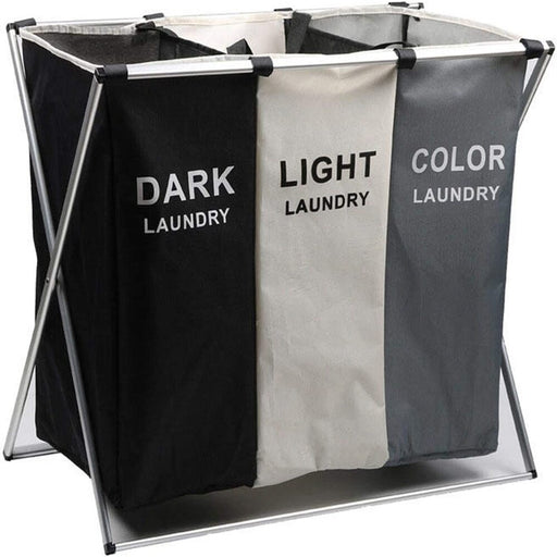 Deze praktische wasmand met drie compartimenten is de perfecte oplossing voor het organiseren van je wasgoed. Met duidelijke labels voor donker, li...