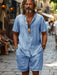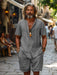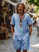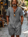 Deze herenset bestaat uit een luchtige cardigan met korte mouwen en bijpassende shorts, ideaal voor warme dagen. Het lichte linnenmix materiaal zorgt voor ademend comfort en een casual uitstraling. Dankzij de ontspannen pasvorm geniet je van maximale bewegingsvrijheid, perfect voor ontspanning of een zomerse wandeling. Een stijlvolle keuze voor elke zomerse gelegenheid.