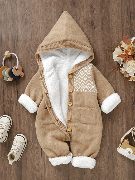 Deze schattige gebreide jumpsuit voor pasgeborenen is perfect voor het warm houden van je kleintje. Met een zachte voering en een kap biedt het ext...