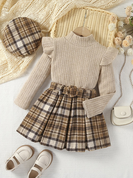 Alle gegevens bekijkenEva Winter Outfit voor Kinderen - Turtleneck Trui met Geruite Rok en Hoed