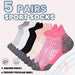 Deze dames compressie sport sokken zijn ontworpen voor maximaal comfort en ondersteuning. Gemaakt van ademend materiaal, helpen ze om zweet te absorberen en ongewenste geurtjes te voorkomen, terwijl ze ook je voeten ondersteunen tijdens sportactiviteiten of dagelijks gebruik. De set bestaat uit vijf paar, waardoor je altijd een schoon en fris paar hebt voor elke dag. Perfect voor hardlopen, wandelen, of casual gebruik!