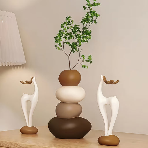Cet ensemble de vases décoratifs apporte calme et équilibre à l'intérieur grâce à son design sculptural inspiré des pierres empilées. Les formes or...