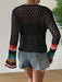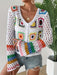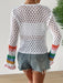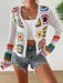 Deze handgemaakte haakjurk valt op door het kleurrijke geometrische bloemenpatroon met regenboogaccenten. Gemaakt van een ademende katoenmix, is de jurk perfect voor lente- en herfstdagen, maar ook ideaal voor vakantie of resortwear. De open voorkant en lange mouwen zorgen voor een speelse, luchtige uitstraling. Een uniek mode-item met een zorgvuldige afwerking.