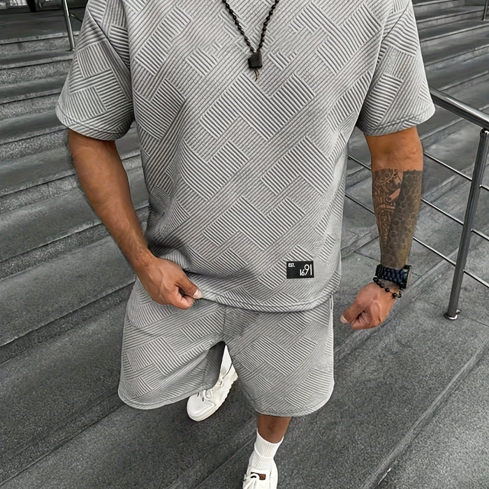 Heren Trendy Jacquard T-shirt en Shorts Set – Casual en Sportief voor Warme Dagen