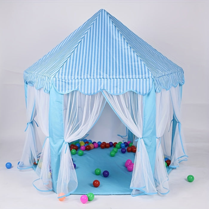 Deze kleurrijke en fantasierijke prinsessentent is perfect voor jonge kinderen die hun eigen kasteel willen ontdekken. Het hexagonale ontwerp biedt veel ruimte om te spelen, terwijl de ademende netstof ervoor zorgt dat het goed geventileerd blijft. De tent is geschikt voor zowel binnen- als buitenspeeltijd en biedt urenlang vermaak en creatieve rolspellen. Het is eenvoudig op te zetten en wordt geleverd met een handige opbergzak voor gemakkelijke opslag.