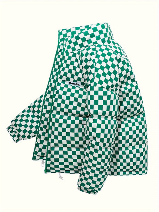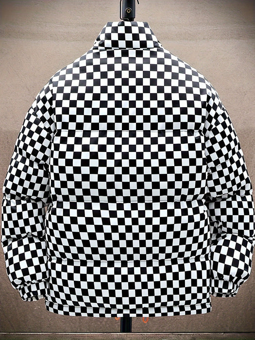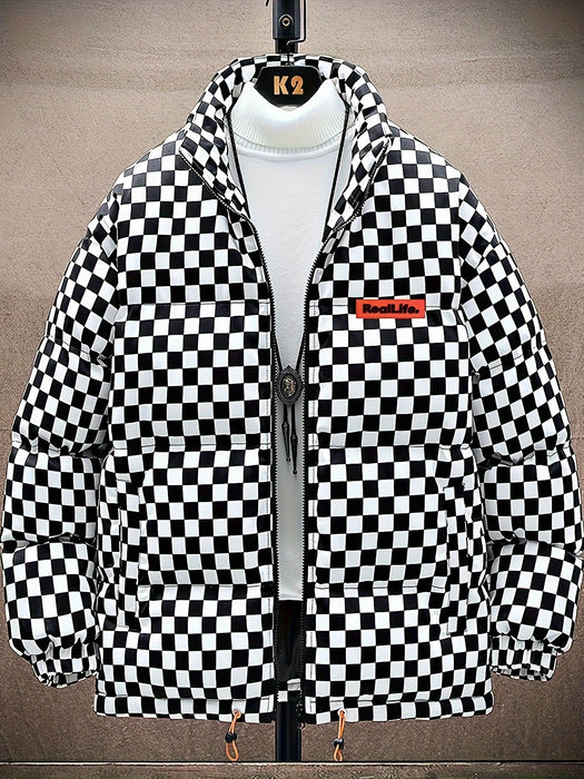Stijlvolle Geruite Pufferjas voor Mannen – Ademend en Warme Winterjas met Staande Kraag